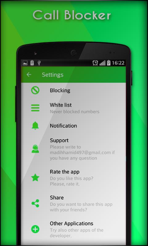 Do not let unwanted calls bother you anymore. Call Blocker helps you block unwanted calls. you can block unknown calls, block all incoming calls, block certain numbers (blacklist numbers) or allow only certain numbers (white list numbers)