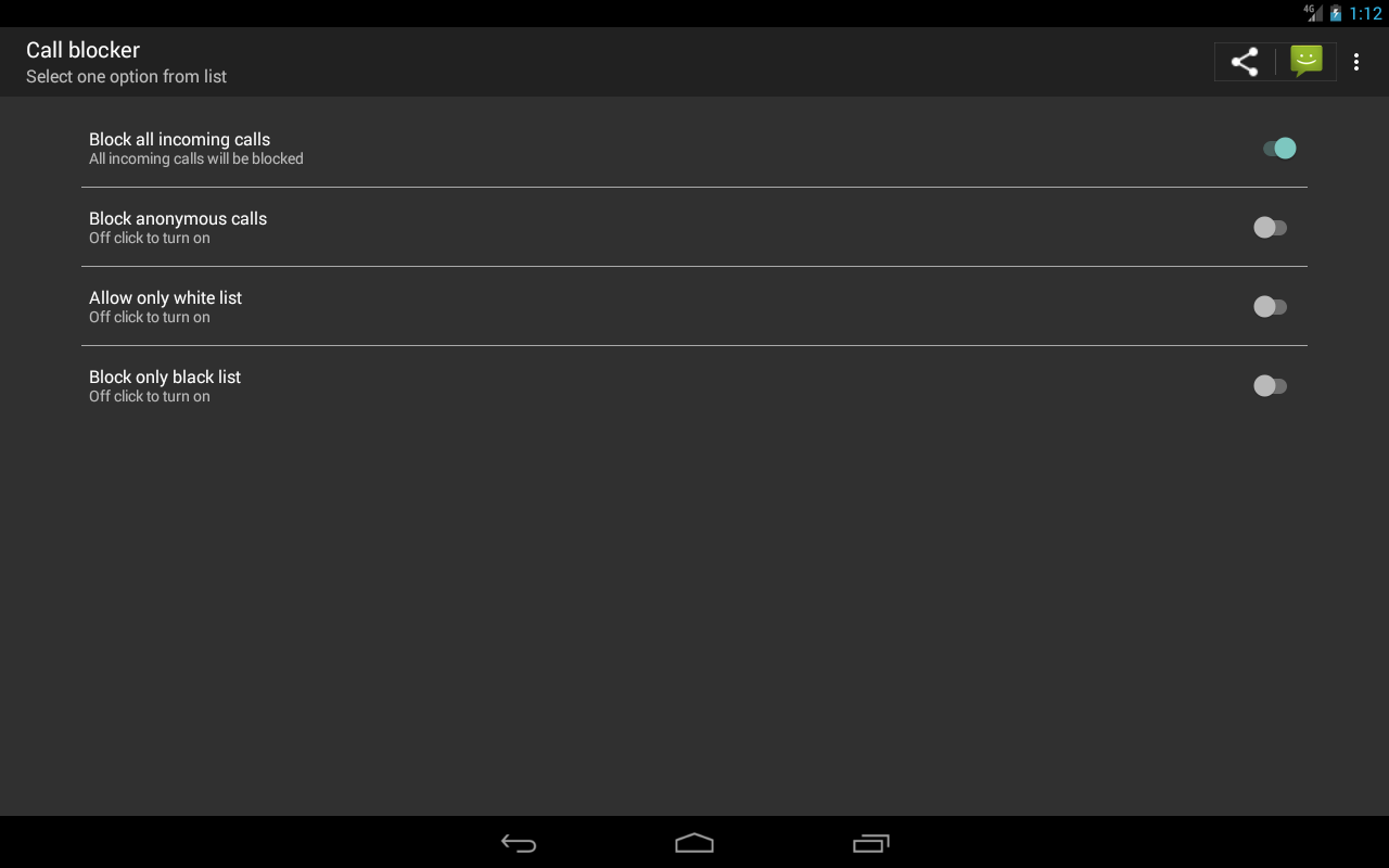 Don't let unwanted calls disturb you anymore. Call Blocker helps you to block unwanted calls. you can block unknown callers , block all incoming calls ,block certain numbers (black list numbers) or allow only certain numbers(white list numbers)
