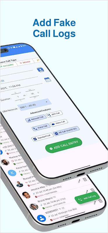 اضافه کردن گزارش های تماس جعلی: ورودی های تماس سفارشی را با جزئیاتی مانند نام، شماره، تاریخ، زمان و مدت ایجاد کنید. برای سرگرمی تماس های ورودی، خروجی یا از دست رفته را شبیه سازی کنید.
