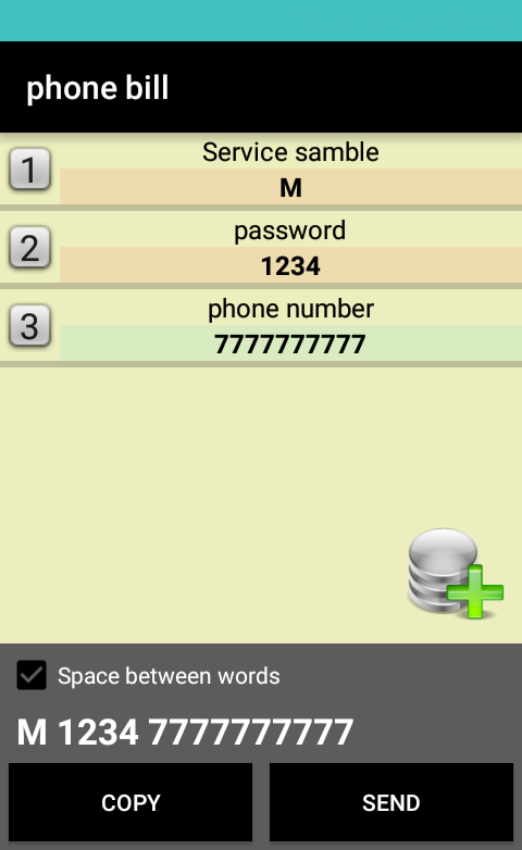 بسیاری از خدمات تلفن همراه USSD / اس ام اس مانند صدور صورت حساب، وجود دارد گرفتن اطلاعات، بانکداری تلفن همراه و یا اشتراک می قطعات محتوای پیچیده ای است که دشوار است. این برنامه کمک می کند تا به سازماندهی خدمات تماس / SMS خود را. ارسال تماس / SMS خود را با اضافه کردن قطعات، متن ها، نمادها، تعداد خدمات و یا هر چیزی که شما می خواهید برای اولین بار و پس از آن استفاده از آن هنگامی که شما نیاز
