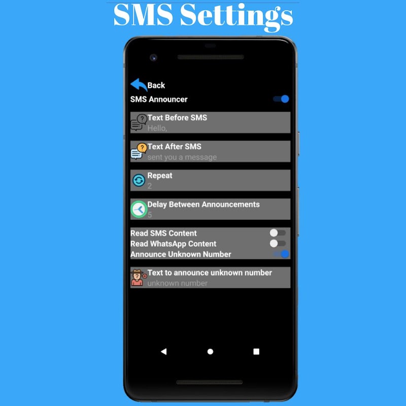 گوینده نام تماس گیرنده با استفاده از موتور متن گفتاری به گفتار اندرویدی ، واضح است که نام تماس گیرنده "ورودی" یا نام فرستنده پیام کوتاه و محتوای پیام را تلفظ کند.