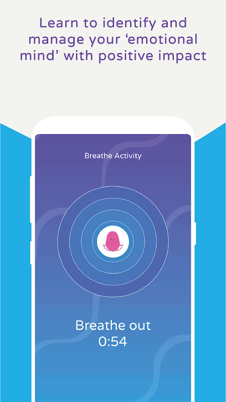 • کاربران فعالیتهای 5 دقیقهای یا 15 دقیقهای (از همان دستههای قبلی)، با شمارش معکوس توسط تایمر، انتخاب میکنند که بر اساس اصول یک تکنیک درمانی به نام رفتار درمانی دیالکتیکی (DBT) است.
