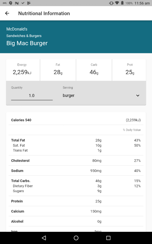 با ضربه زدن بر روی یک غذای خاص، شما به سرعت می توانید اطلاعات دقیق تر از جمله پروتئین، فیبر، چربی اشباع، چربی ترانس، کلسترول، سدیم و الکل دسترسی پیدا کنید. رژیم غذایی هرگز آسان نیست، اما CalorieKing می تواند با ارائه اطلاعات مورد نیاز برای رسیدن به وزن هدف خود و لذت بردن از سلامت بهتر کمک کند.