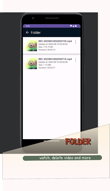 ★ آسان برای باز کردن پوشه حاوی فیلم های ضبط شده.