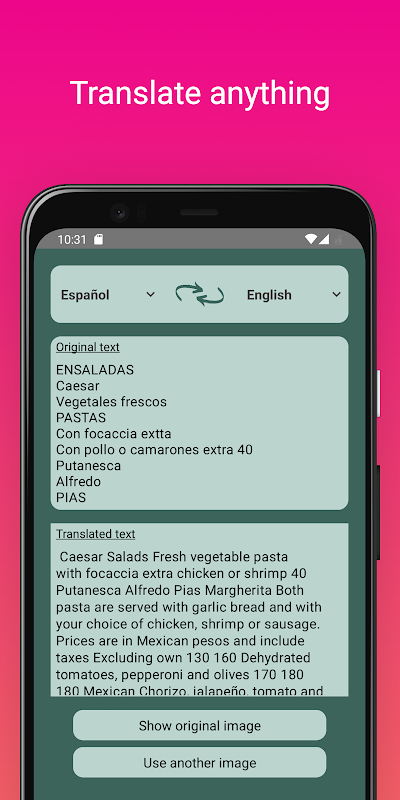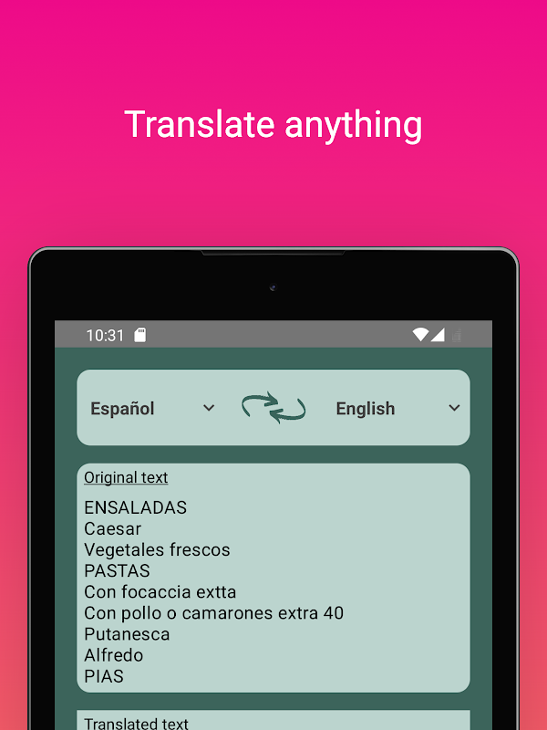 Camera Translator برنامه شخصی شما برای ترجمه دنیای اطراف شما است.