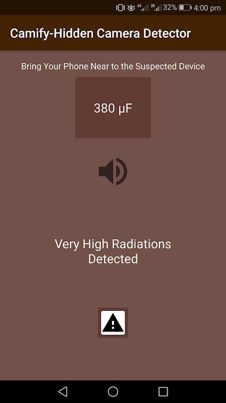 camera detector app protect your privacy from spy hidden camera lenses.Camera Detector app works best detecting all metal cameras up to 15 cm away from your device, and working best detecting ferromagnetic materials, such as detect camera and it can’t detect non-ferromagnetic materials such as aluminum or other material.