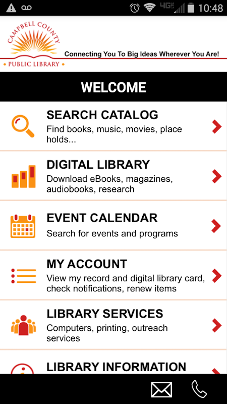کتابخانه عمومی کمپبل شهرستان در حال حاضر به عنوان یک برنامه برای قرص یا گوشی های هوشمند خود را در دسترس است. این برنامه سریعترین، ساده ترین راه برای جستجوی موارد، ثبت نام برای برنامه ها و در مورد خدمات ما یادگیری است.