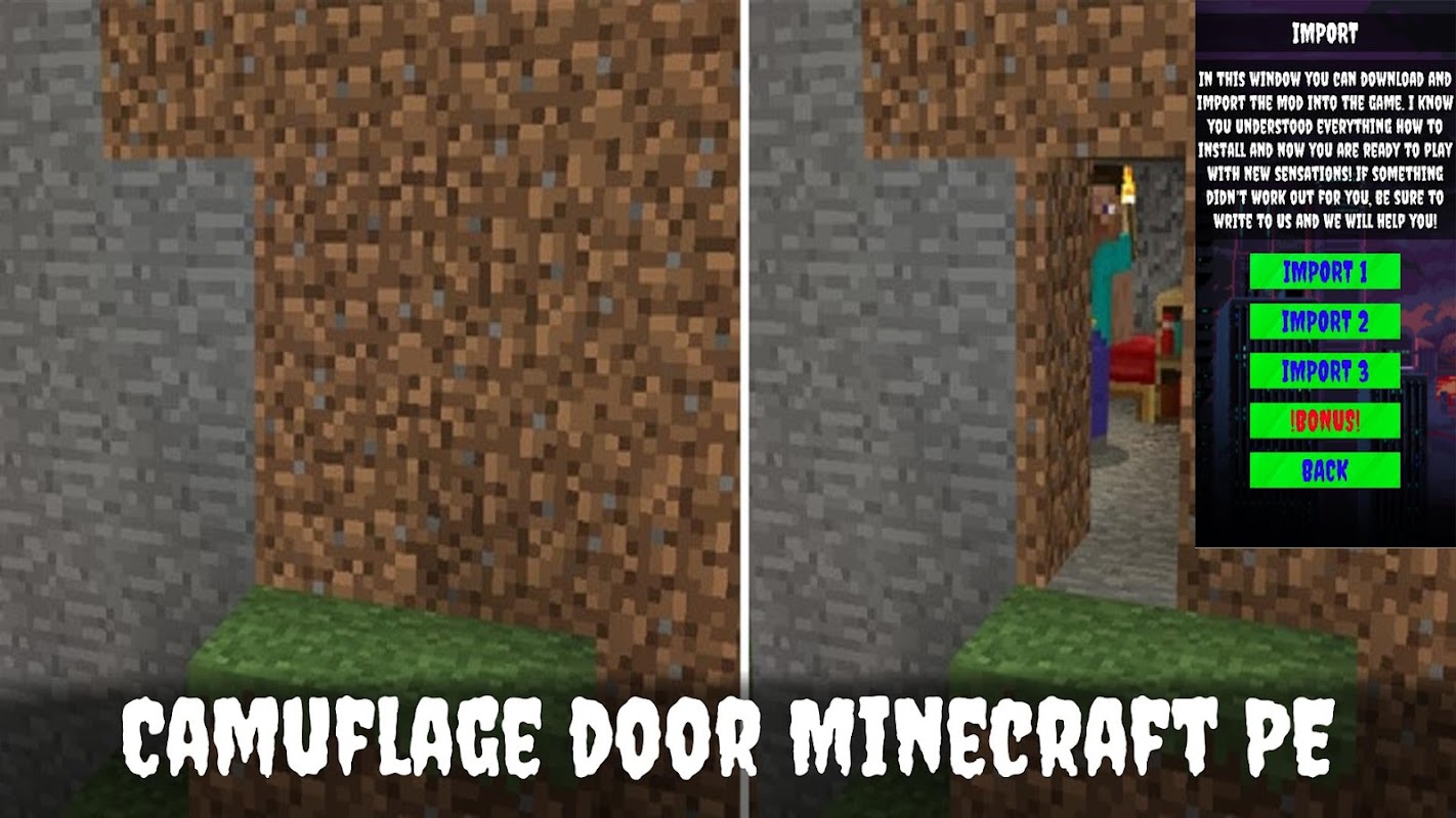 ✌ Giving joy Camuflage Door mod for Minecraft PE 2022 can completely change your pastime in MCPE and make all other players marvel at your mods. Camuflage Door mod for Minecraft PE is a modern addon with high-quality textures and a simple interface that will not leave anyone indifferent!