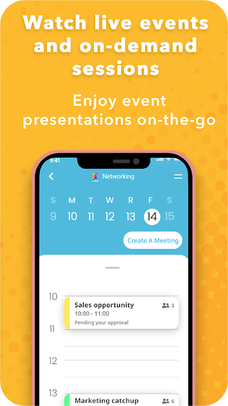 جلسات یک به یک یا گروهی را از قبل تنظیم کنید و برنامه را در "برنامه کاری من" و همچنین در Outlook یا Google Calendar ذخیره کنید. حداکثر 250 نفر می توانند در یک جلسه شرکت کنند. متناوبا، خودجوش باشید و از یک شرکت کننده دیگر دعوت کنید که به سادگی «هم اکنون ملاقات کند». جلسات می تواند به صورت ویدئویی یا حضوری باشد. آنها ابتدا در یک منطقه زمانی رویداد تعیین شده تنظیم می شوند و یک شرکت کننده می تواند کل رویداد را در هر منطقه زمانی که انتخاب می کند به روز کند.