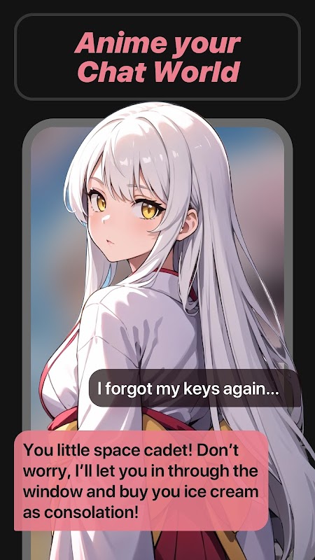 به شما امکان می دهد با شخصیت های پر جنب و جوش سبک انیمه چت کنید. با همراهان مجازی که برای سرگرم کردن و الهام بخشیدن طراحی شده اند، در گفتگوهای سرگرم کننده و شخصی سازی شده شرکت کنید و در هر چت دنیای انیمیشن مورد علاقه خود را زنده کنید!