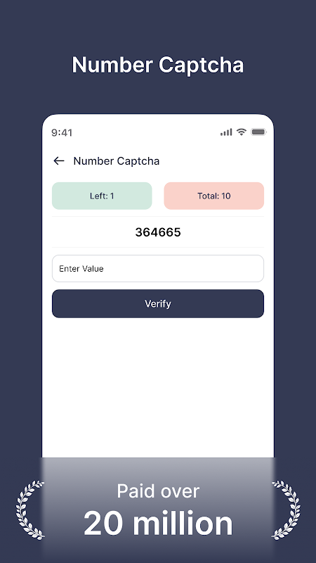 با برنامه Captcha Solver ما، یک تجربه هیجان انگیز و ارزشمند را باز کنید! اگر به دنبال راهی سرگرم کننده، ساده و جذاب برای کسب امتیاز هستید، به جای درستی آمده اید. برنامه ما راهی بدون زحمت برای تکمیل چالش های کپچای آسان و بازخرید امتیاز برای جوایز هیجان انگیز ارائه می دهد.