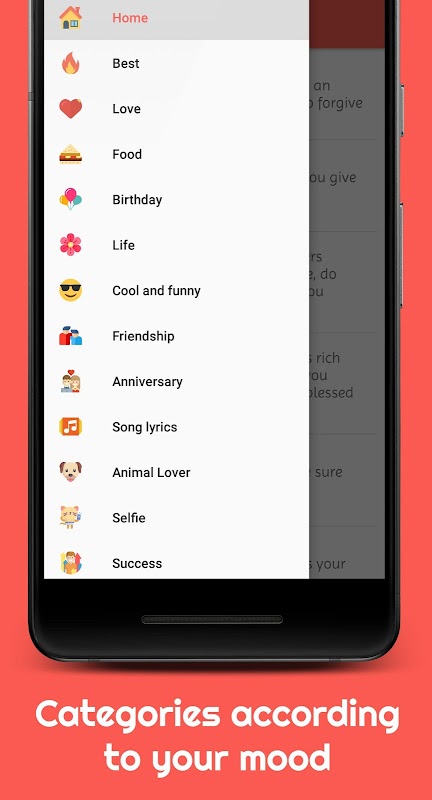 از بین بیش از 15 دسته ، وضعیت/زیرنویس هایی را انتخاب کنید که با روحیه شما یا تصاویر شما مطابقت دارد