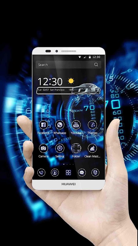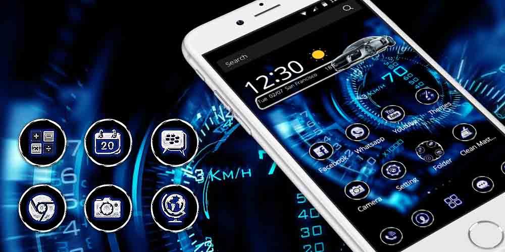 We support Samsung, Huawei, Sony, Microsoft and most android phones. Welcome to join us and have an enjoyable experience. You can change according to your hobbies. The brand new theme of the racing car in the rain bring you different kinds of free skeleton or fire theme every day. This super racing car speedometer theme is not an app lock screen theme or a car panel theme. You need to install CM Launcher to use the theme. After only a few steps you will get a theme of the super racing car speedometer with dark luxury blue wheel icons.