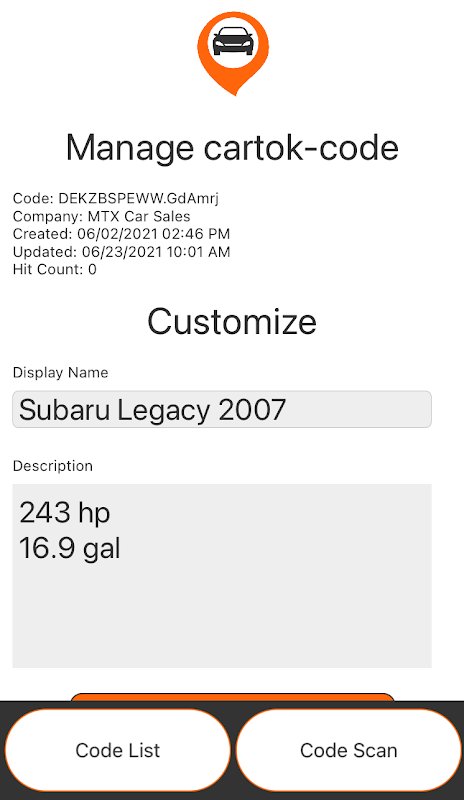 Car Tok به شما امکان می دهد اطلاعات مربوط به کالایی را ذخیره کنید و آن را از طریق کد QR در دسترس قرار می دهد