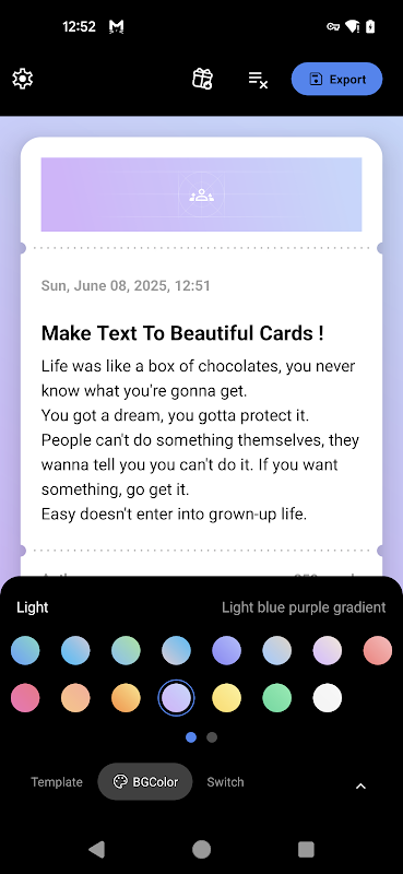 متن را تایپ یا جایگذاری کنید → یک الگو را انتخاب کنید → Boom! کارت شما آماده است.