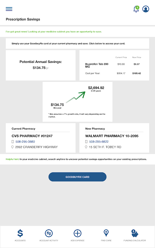 - یک کابینت پزشکی مجازی بارگیری کنید ، به دنبال پس انداز دارو باشید ، به کارت تخفیف دارویی دسترسی پیدا کنید تا در کیف پول دیجیتالی شما ذخیره شود.