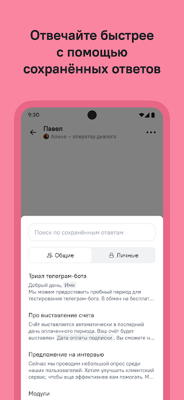 همه درخواست های کاربران از چت در وب سایت ، شبکه های اجتماعی و پیام رسان های فوری اکنون در تلفن هوشمند شما وجود دارد. گفتگوها را توسط اپراتورها ، برچسب ها و وضعیت فیلتر کنید.