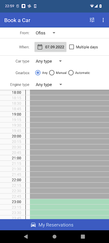 کارمندان بر اساس پارامترهای انتخاب شده می بینند که پنجره های زمانی برای رزرو خودرو در دسترس است.