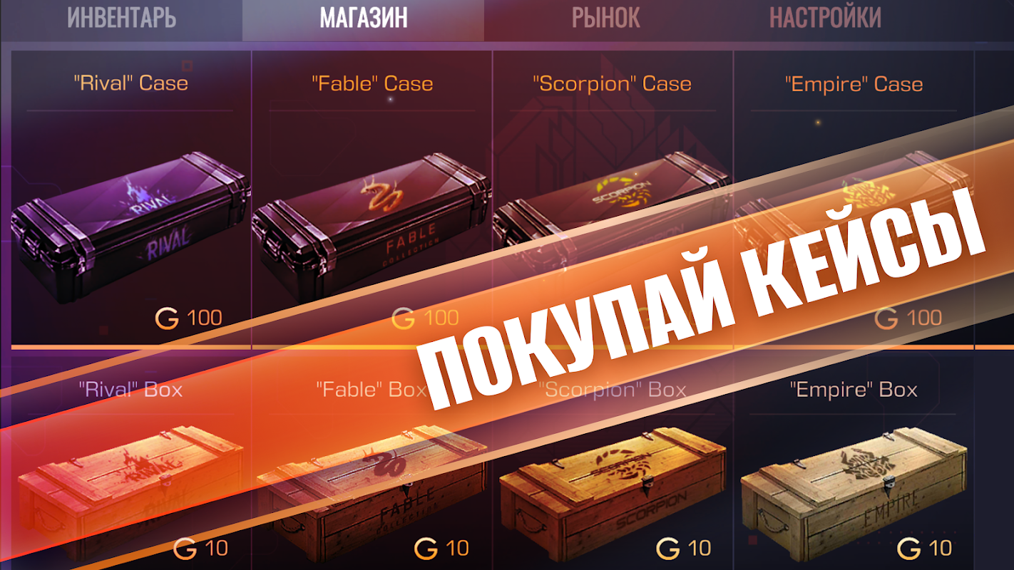 Case Simulator это игра, которая симулирует открытие кейсов и выпадение различных предметов. В игре присутствуют кейсы, боксы и паки со стикерами, открывай кейсы, покупай арканы, крафти новое оружие, собери инвентарь мечты!
