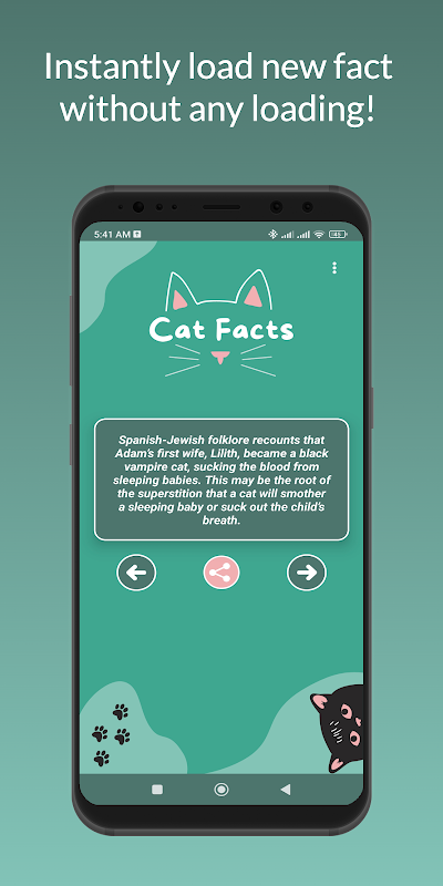 این برنامه کوچک صدها واقعیت جالب در مورد گربه ها دارد و حتی به صورت آفلاین و بدون اتصال به اینترنت کار می کند. رنگهای دلپذیر و رابط کاربر پسند آن را به بهترین برنامه واقعیتهای گربه تبدیل کرده است. می توانید این حقایق زیبا را بخوانید و با دوستان و خانواده خود به اشتراک بگذارید.