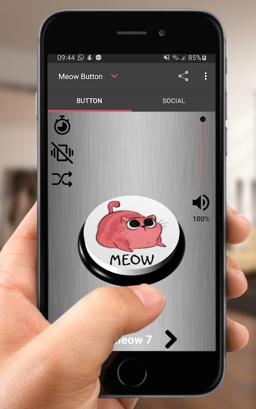 در Cat Kitten Meow Button هفت افکت صوتی وجود دارد که می توانید با فشار دادن فلش راست یا چپ آنها را تغییر دهید.