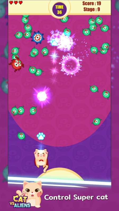 برای کنترل گربه روی صفحه به سمت چپ و راست بکشید و اجازه ندهید بیگانگان رد شوند. هنگام بازی می توانید مورد را جمع آوری کنید تا بازی راحت تر شود.