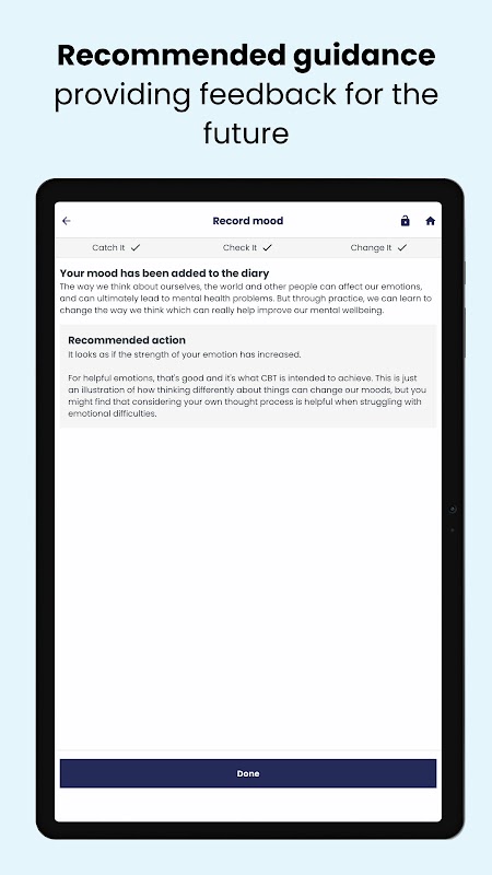 این برنامه برای نشان دادن برخی از اصول کلیدی رویکردهای روانشناختی به سلامت روان و بهزیستی، و به طور خاص درمان رفتاری شناختی (CBT) طراحی شده است.