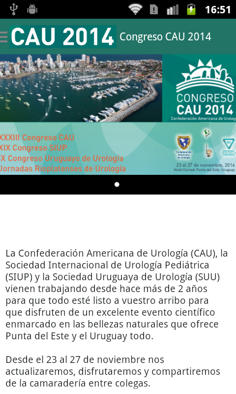 Esta es la aplicación del congreso de Urología CAU2014 que se desarrolla en Punta del Este, Uruguay del 23 al 27 de noviembre. Contiene información sobre el programa, oradores, Uruguay y más.