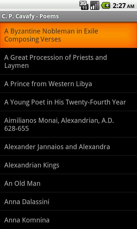 اشعار شاعر یونانی کنستانتین کاوافی (1863-1933). شامل ترجمه انگلیسی و اصل یونانی.