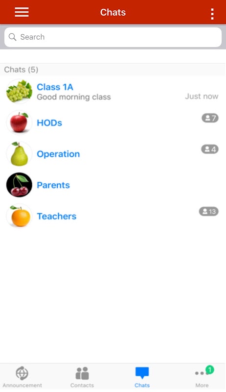 * School Communication ( Announcement Channel , Secure Group Chat & Individual Chat Mode , Audit Trail of Chat Messages )