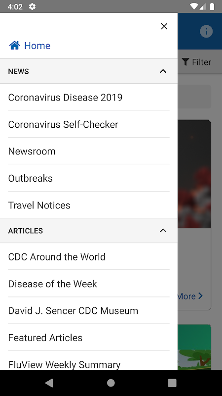 این برنامه تضمین می کند که به روزترین اطلاعات بهداشتی را دریافت می کنید. صفحه اصلی به شما امکان می دهد تمام اطلاعات خود را در یک مکان مشاهده کنید و هر زمان که دستگاه شما به WI-FI متصل شد به روز می شود. از محتوای متنوعتری مانند تصویر هفته، تعداد موارد بیماری، ویدیوها و پادکستها لذت ببرید تا جدیدترین اطلاعات بهداشتی CDC را به شما ارائه دهد.