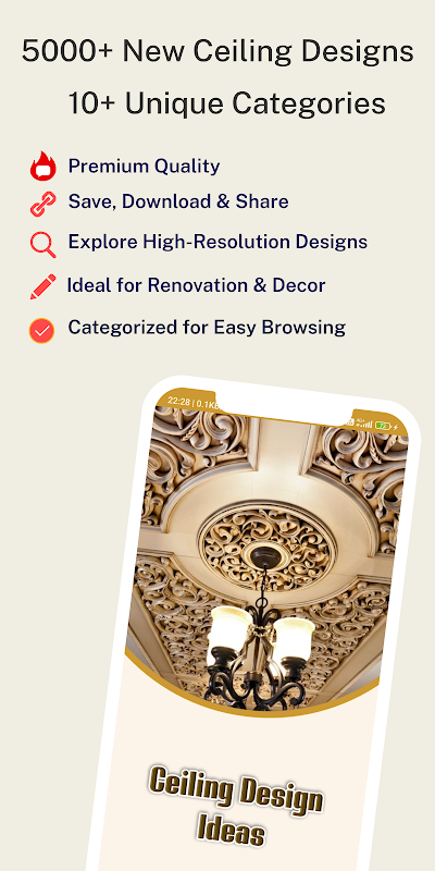 🔹 ناوبری آسان - طرح های سقف را به سرعت بر اساس نوع و سبک اتاق پیدا کنید.