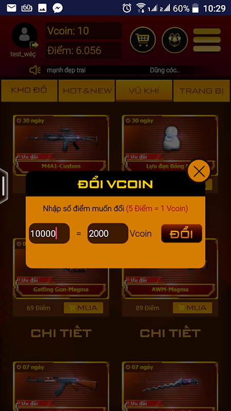 - Mua vật phẩm trên Shop, có thể nhận ngay vào game và trải nghiệm.