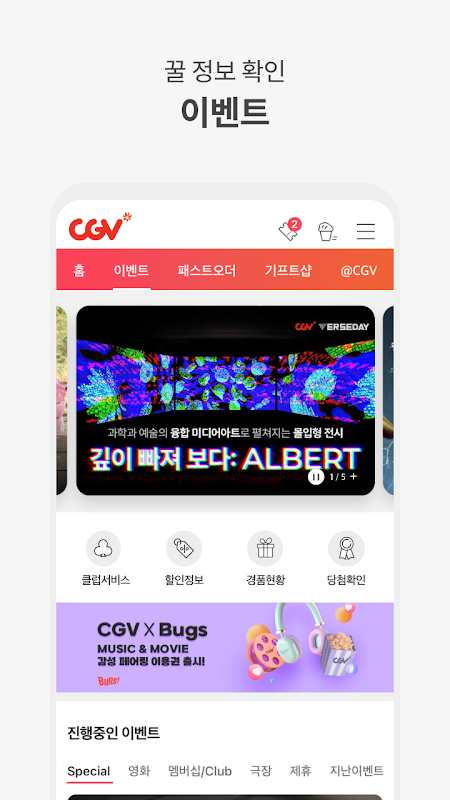 - می توانید رویدادهای جاری CGV و اطلاعات تخفیف را در یک نگاه بررسی کنید.