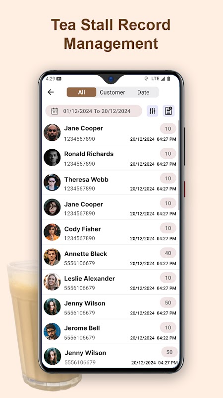 یک رکورد سازمان یافته از تمام معاملات چای، از جمله نوع، مقدار، و زمان بندی چای سرو کنید. این ویژگی تضمین می کند که هیچ ورودی از قلم نیفتد و یک نمای کلی از فروش یا مصرف روزانه چای را ارائه می دهد.
