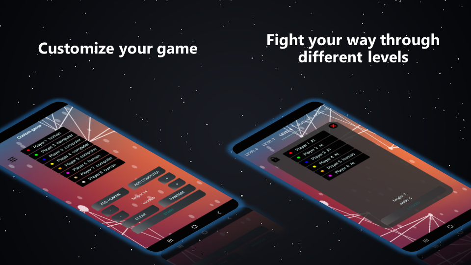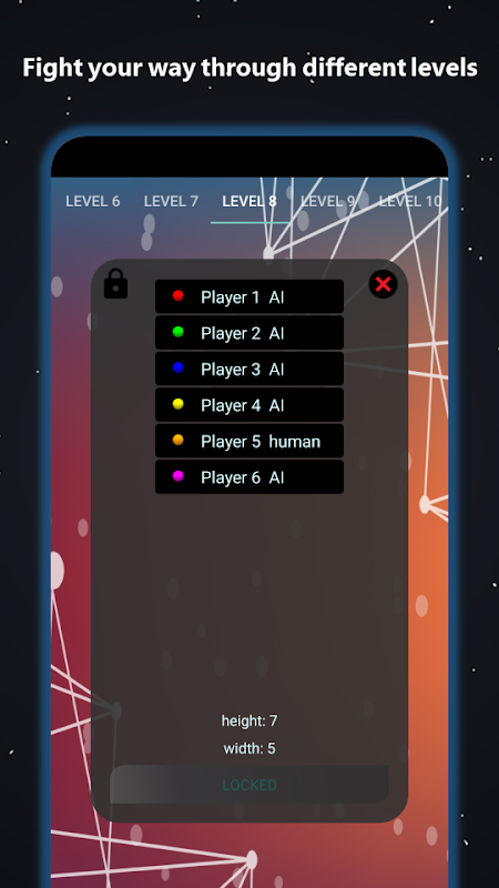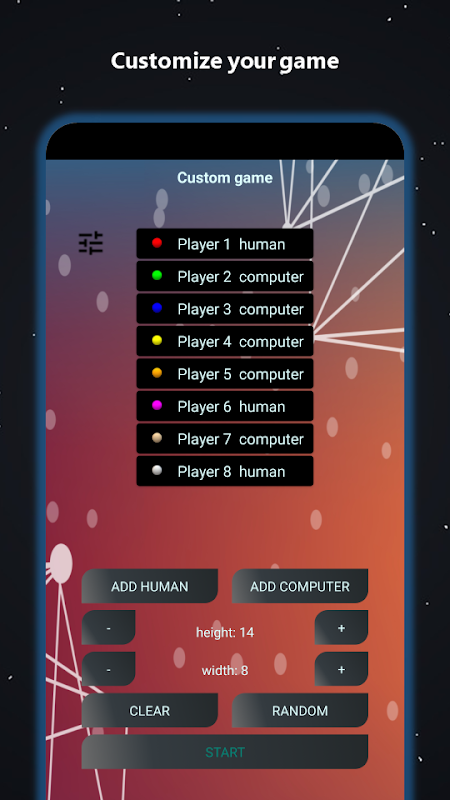 Chain Reaction is a strategy game where human and AI players can play against each other on different playgrounds. Each player has an allocated color, red (first player), green (second player), and so on. The objective is to take control of the board by eliminating your opponents' particles. Players take it in turns to place their atoms in a cell.
