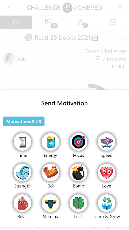 چالش خود را برای دوستان و افراد دیگر ارسال کنید تا بتوانند چالش شما را بپذیرند. چالش هایی را پیدا کنید که برای شما جالب هستند و آن را شروع کنید! تصاویر پیشرفت خود را منتشر کنید و به دیگران انگیزه دهید که مسیر شما را دنبال کنند.