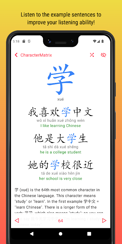 √ با ضربه زدن روی شخصیت هایی که در جملات مثال نمی شناسید، کاوش کنید تا بیشتر بدانید