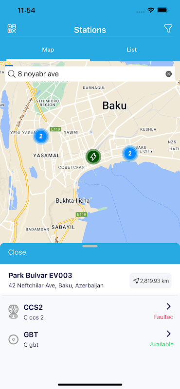 • نقاط شارژ را روی نقشه جستجو کنید