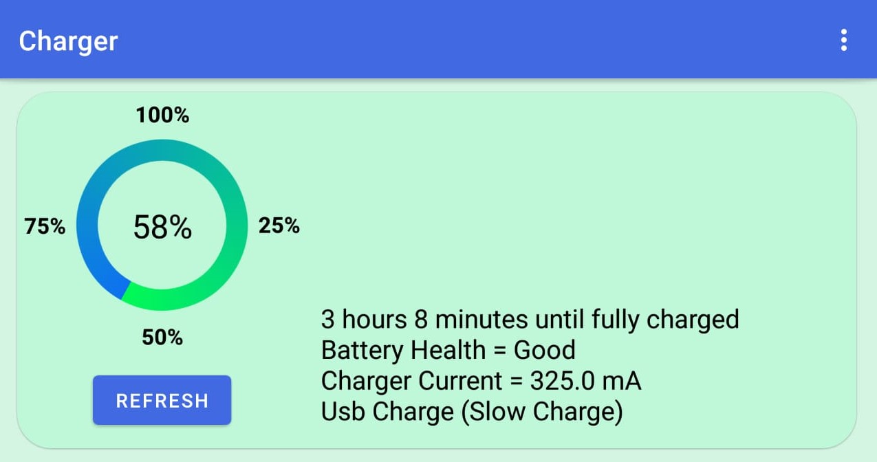 It shows estimated charging time with current and other info in Real-time. Users can also enable notifications so when the charger is connected users will be able to see charging status in the notification window.