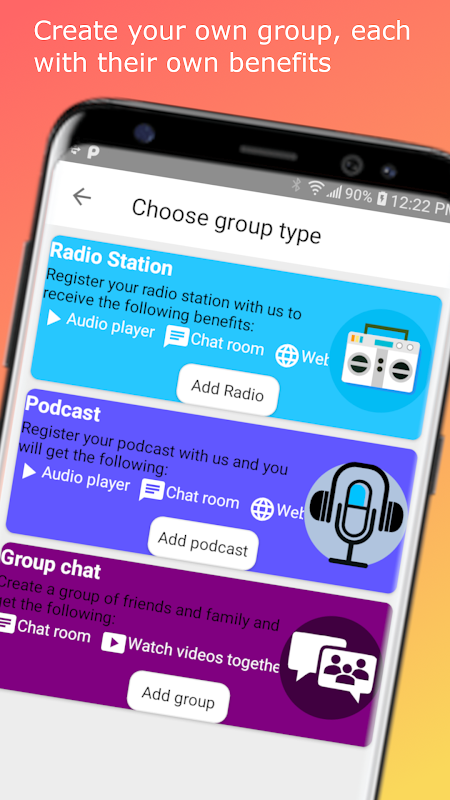 به اتاقهای چت عمومی بپیوندید و با افرادی که علایق مشابهی دارند ملاقات کنید و/یا با دوستان خود که در حال حاضر از برنامه استفاده میکنند پیام خصوصی بدهید. اگر می خواهید به رشد جامعه و مخاطبان خود کمک کنید، ایستگاه رادیویی یا پادکست خود را با ما ثبت کنید.