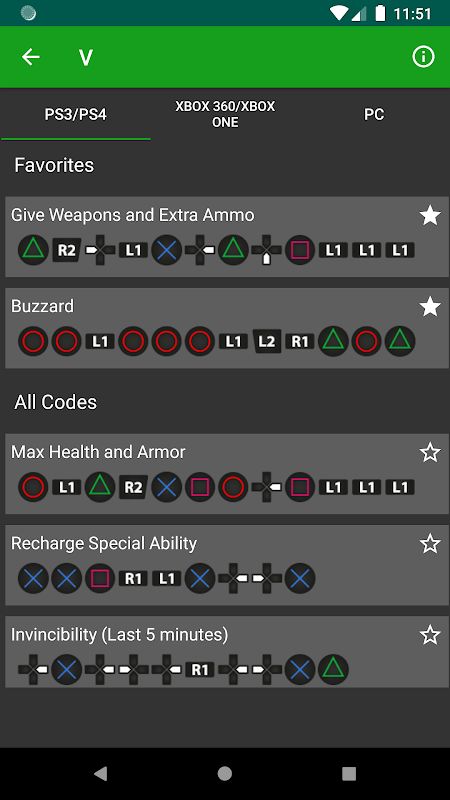 در اینجا لیست کاملی از کدها برای استفاده در بازی های مختلف جهان باز در کلیه سیستم عامل های مختلف که در آن موجود است (PS2 ، PSP ، PS3 ، PS4 ، Xbox ، Xbox 360 ، Xbox One و PC) موجود است.