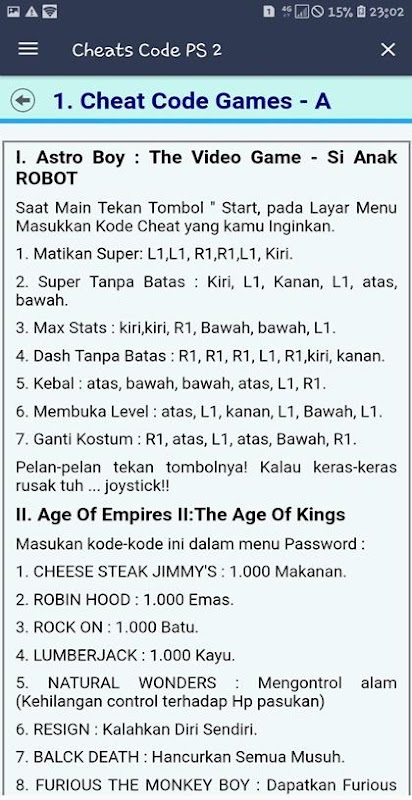 اطلاعات Cheats Code PS 2 APK