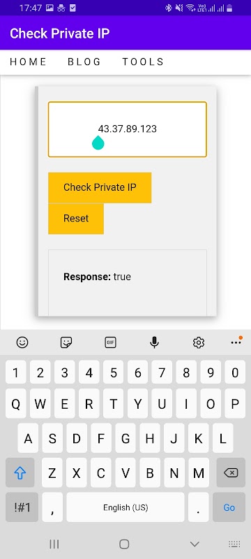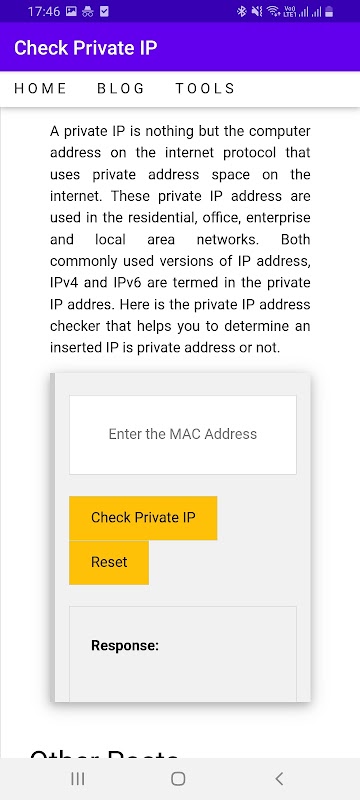Check whether the inserted IP address is a private IP or not with this help of this app.