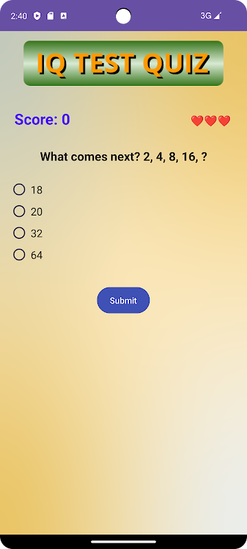 IQ Tester یک برنامه ساده اما جذاب است که برای سنجش هوش شما از طریق مجموعهای از سوالات چند گزینهای (MCQ) طراحی شده است. این برنامه با رابط کاربری زیبا و بدون حواسپرتی، یک تجربه تست روان و لذتبخش را برای کاربران در هر سنی ارائه میدهد.