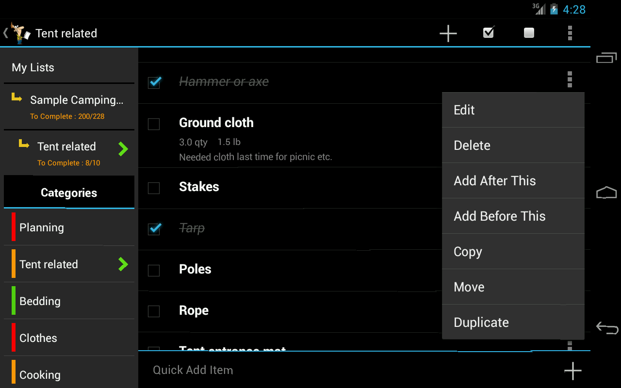 This app is a simple checklist for your everyday needs. Very simple and intuitive to use.