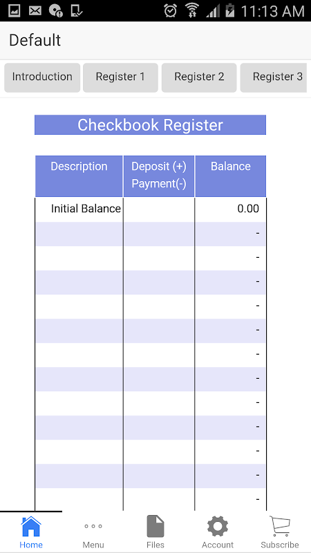 شما می توانید هزینه ثبت، و توسعه یک تعادل کل. برنامه به شما امکان ذخیره و استفاده مجدد از ثبت نام بررسی کتاب، بنابراین شما می توانید ببینید و حفظ مسیر از پیشرفت مالی از کسب و کار خود را در طول زمان.