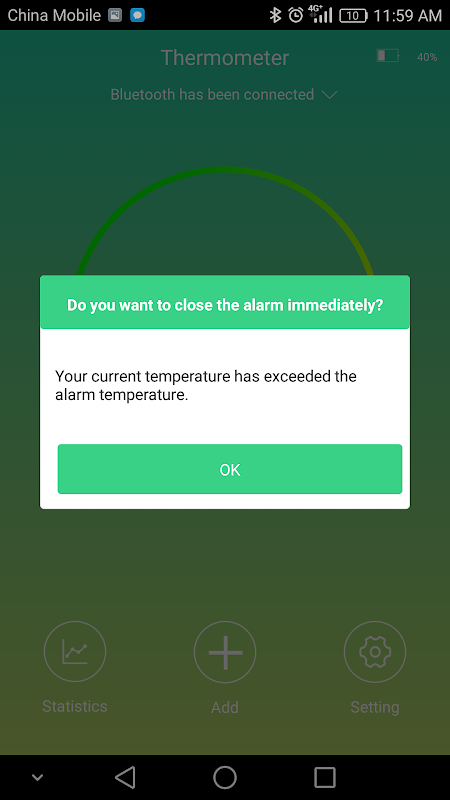 شما می توانید درجه حرارت زنگ خود را تنظیم کنید. هنگامی که شما بیش از درجه حرارت زنگ تعیین شده توسط شما، این برنامه را حفظ خواهد کرد به یاد تو (تلفن را حفظ خواهد کرد به زنگ زدن تا زمانی که زنگ به شما نزدیک) در حال حاضر آن است که تخلیه، بنابراین شما می توانید اقدامات ضد تب موقع را