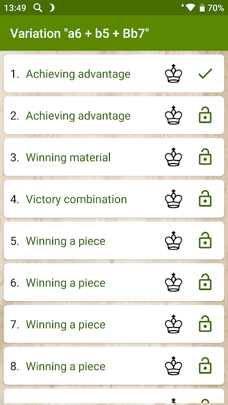 نسخه رایگان اپلیکیشن «شطرنج - افتتاحیه روی لوپز» شامل 81 تمرین جالب ترکیب پیروزی، کسب مزیت، برنده شدن مهره ها و مات کردن در چند حرکت است. در نسخه کامل اپلیکیشن حدود 500 کار در انتظار شماست.