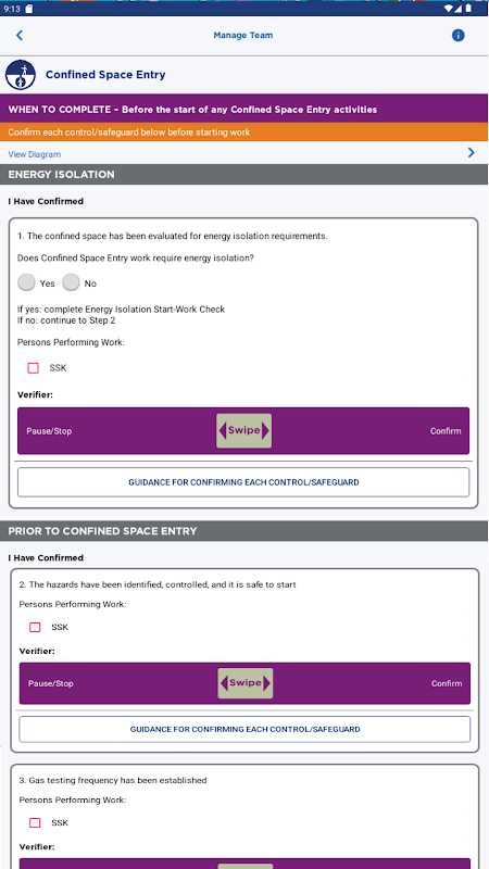 Verifiers Start-Work کاربران اصلی این نسخه خواهند بود که به صورت تعاملی از برنامه استفاده میکنند تا تأیید کنند همه کنترلها/ایمنیها درست هستند و بلافاصله قبل از شروع کار برای هر یک از فعالیتهای کاری زیر عمل میکنند: